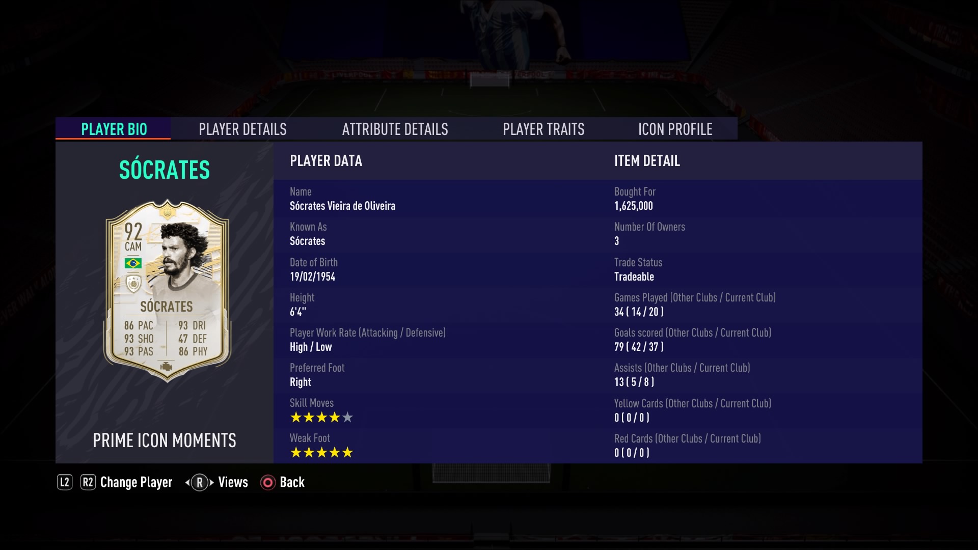 Socrates will always be my first love in terms of Icons in this game. He was the first Icon I ever packed back in FUT 19 and loved using his Base card earlier this year. In need of a target man, I picked up his PIM card and slapped Engine on him and boy did he deliver. The doctor consistently diagnoses defenses with a cases of despair and confusion in their inability to stop him. His height and physicality is unlike anyone else for his position. Any cross to his head will often be in the back of net. His shots are consistently packed with power. He is just a complete force in attack. The only real drawback was his pace combined with his balance aren't a good mix. Despite this sluggishness, he still seems to get by defenders when he has an opening as his physicality ensures they won't be able to tackle him back. He's probably the only "clunky" striker that I've enjoyed using. All in all, PIM Socrates has to be the best target man striker I've ever used in FUT. If you have the coins, give him a try and he likely won't disappoint.